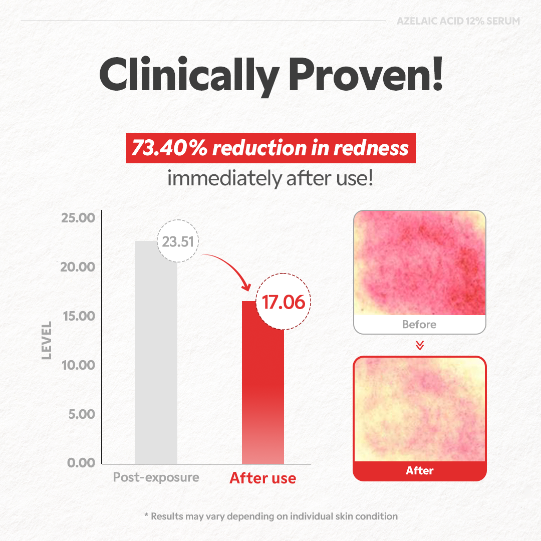 12% Azelaic Acid works to unclog pores, smooth texture, and fade post-acne marks—without harsh irritation.