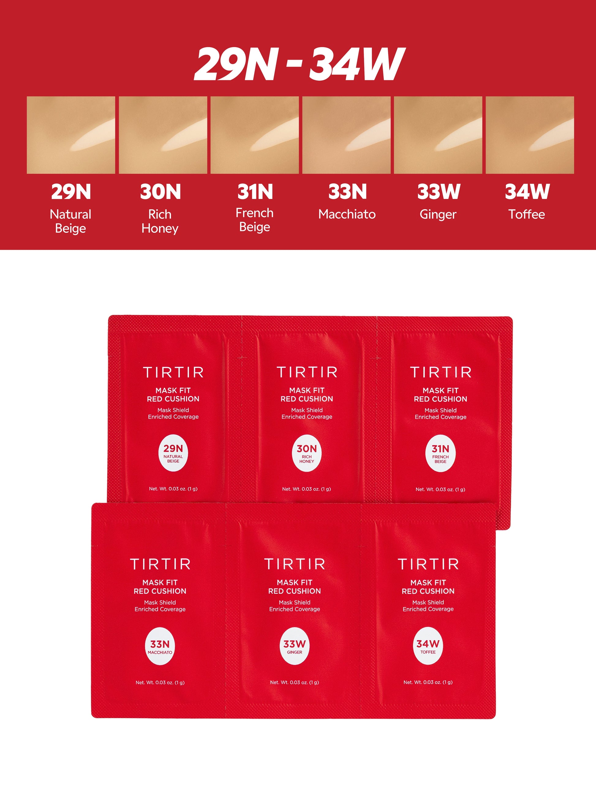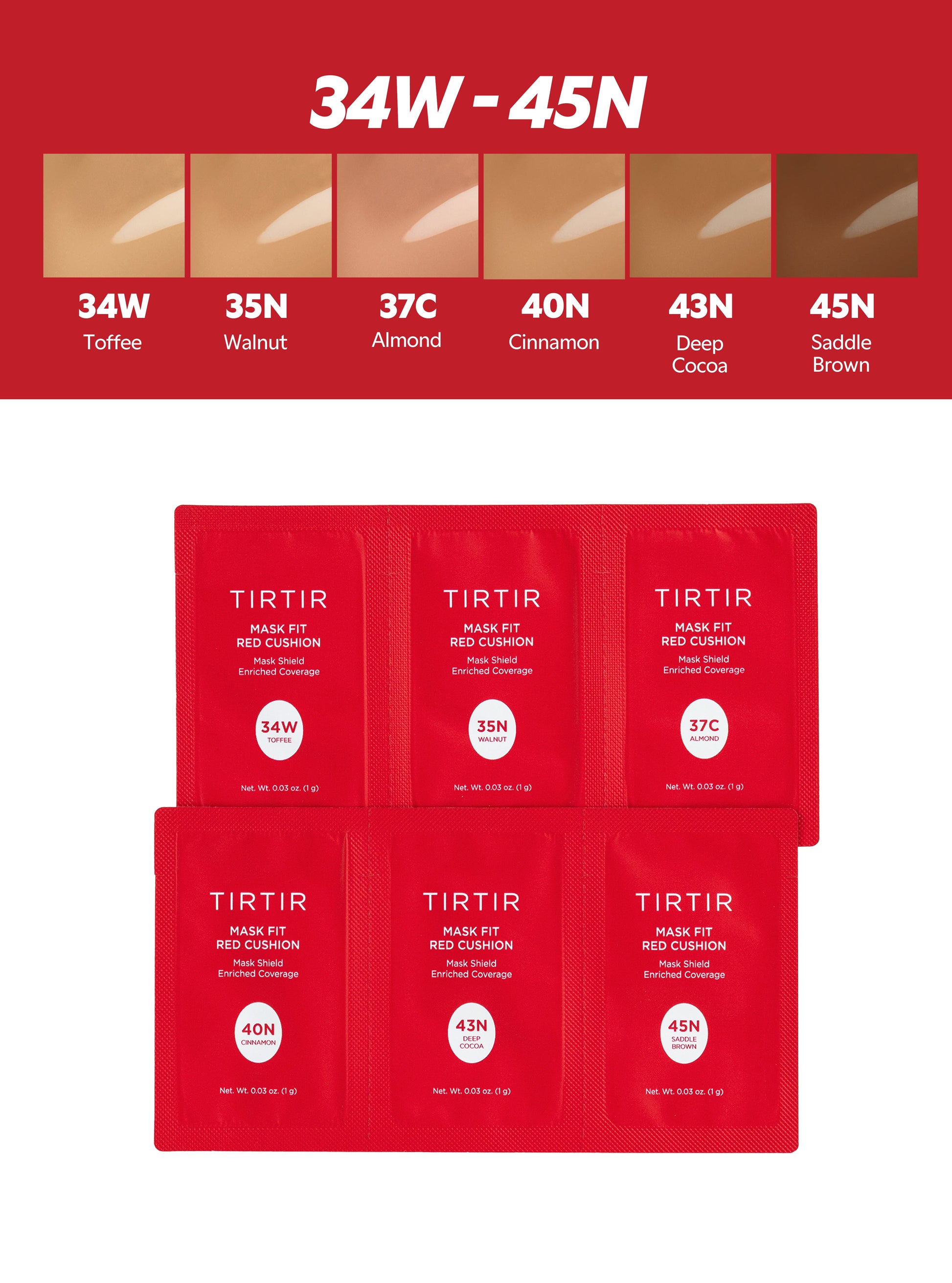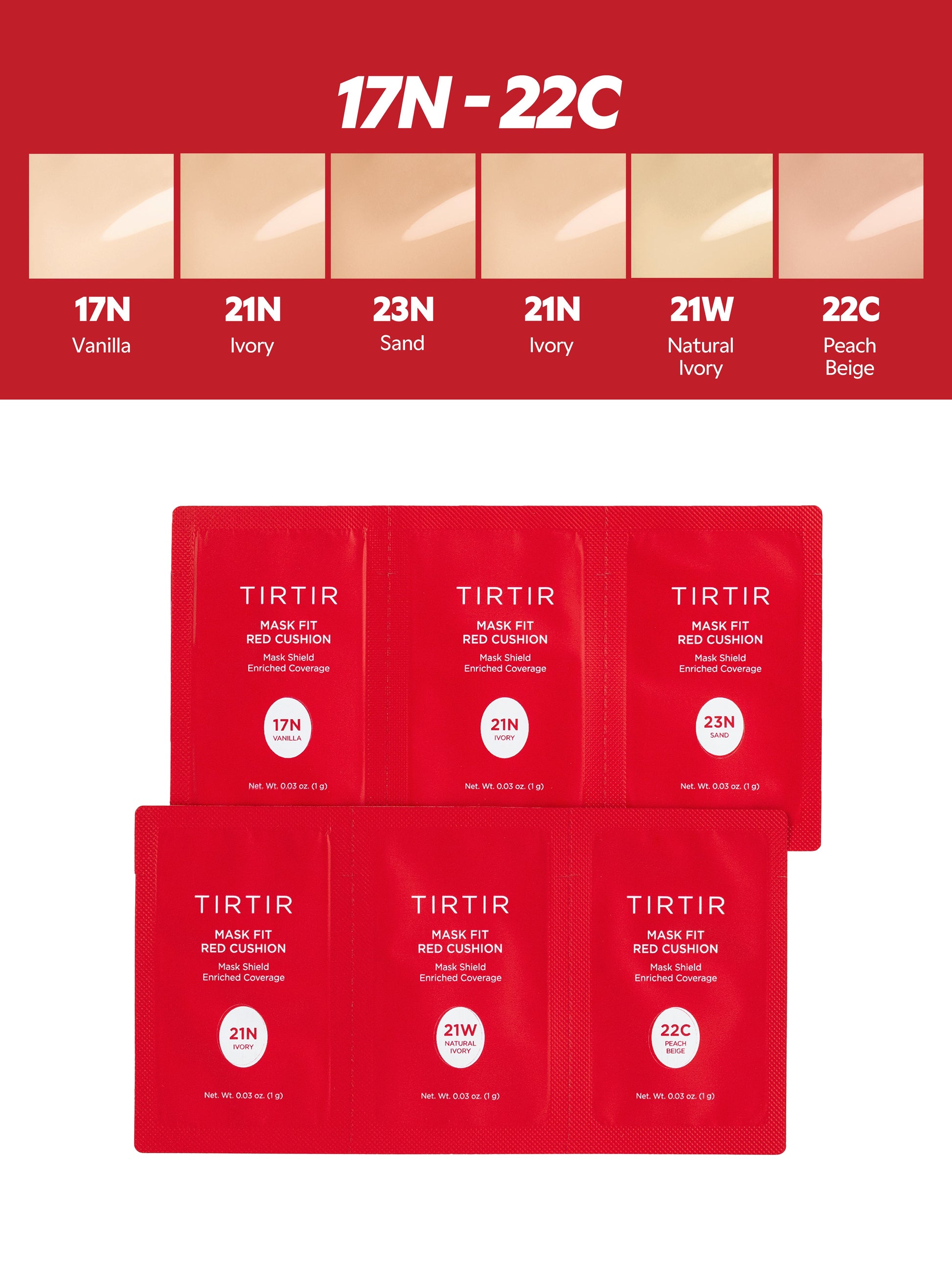 The TIRTIR Mask Fit Red Cushion Trial Kit is designed to help you find your ideal shade before committing to the full-size cushion. Experience the same hydrating, full-coverage formula in a convenient trial kit that lets you test and match your perfect color effortlessly.